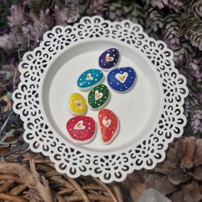 originální malba akrylovou barvou na mramorový kámen z Řecka - ostrov Thassos - sada sedmi kamínků v barvách čaker - kamínky harmonizují jednotlivé čakry